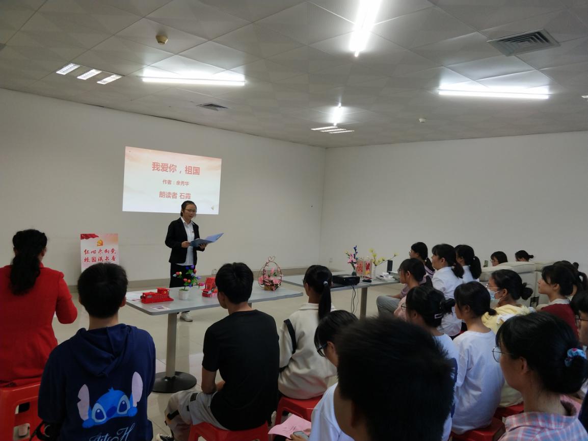 活动伊始,主持人谭惠老师向参会人员介绍了本次活动开展的背景和意义,并分享了自己阅读红色经典书籍的感悟和收获,表达了一位教师党员对党和国家的热爱之情。