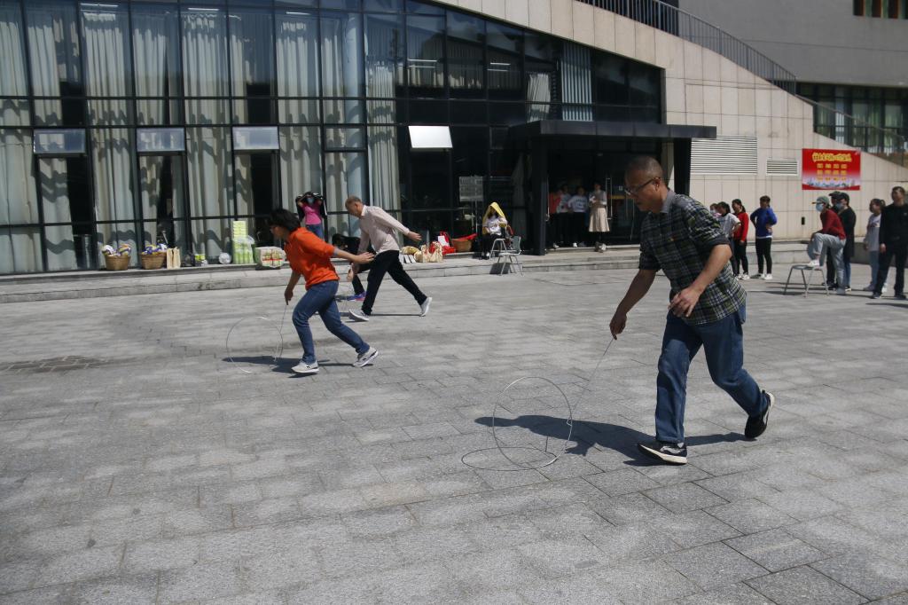 活动的第二阶段是红色趣味运动会。比赛项目有:红军的扁担、艰难长征路、巧渡金沙江、南泥湾抢收、滚铁环和迈向新时代。项目取材于著名革命故事,意在将红色精神与体育运动相结合,提升馆员们的团队协作能力和凝聚力,增强体质,锻炼人格。在比赛中,四支运动代表队奋勇争先,精诚团结,充分展示了馆员们敢于拼搏、勇于争先的奋斗精神。经过激烈的角逐,最终参考咨询部与采编部联队脱颖而出,获得团体总分第一名的好成绩。