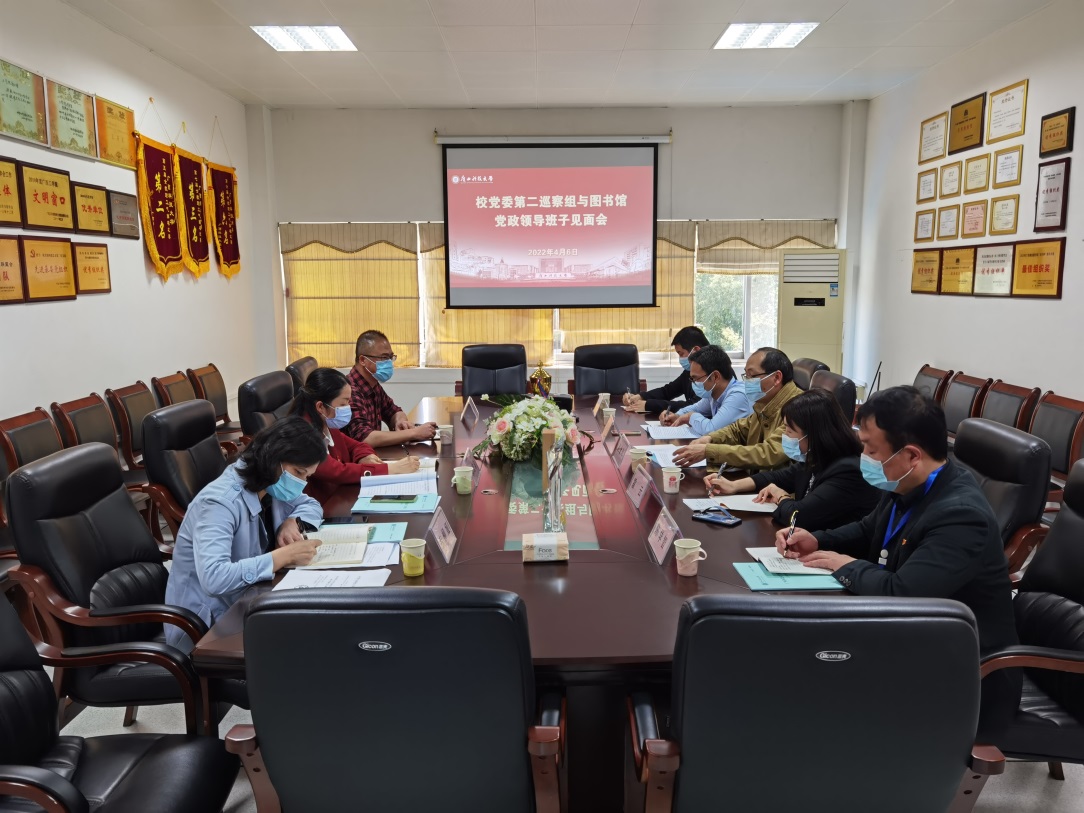 4月6日下午,学校党委第二巡察组召开与图书馆党政领导班子见面会,第二巡察组组长赵金和、副组长雷云、组员黄大志、陈学智、吴骏出席会议,图书馆党政领导班子成员参加见面会。会议由第二巡察组组长赵金和主持。