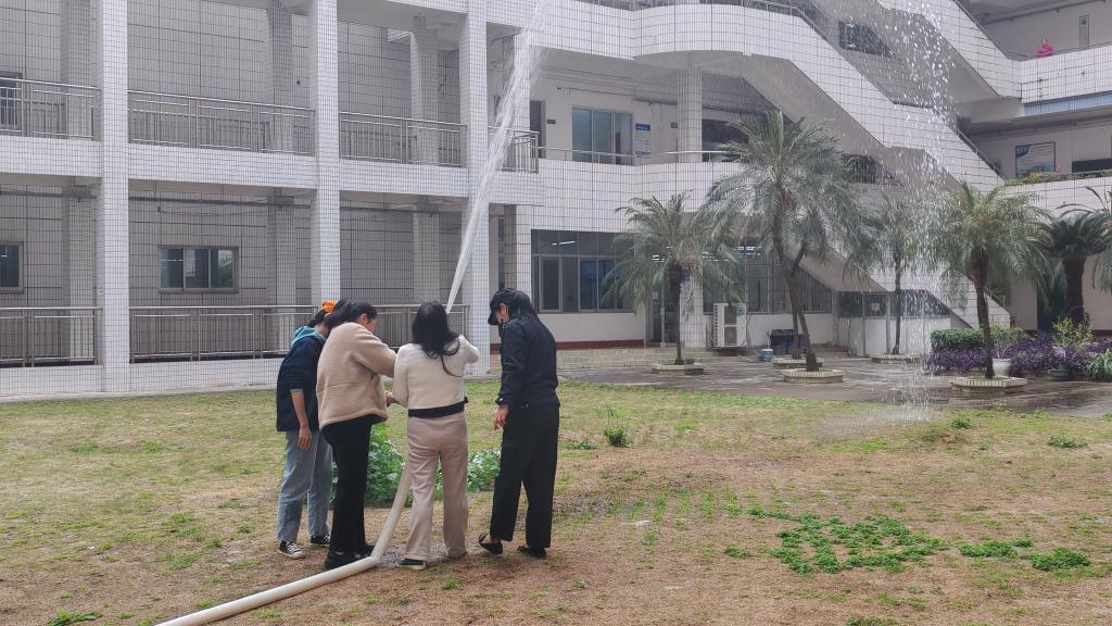 培训会后,全体人员在室外场地分别开展了消火栓使用操作培训和灭火器灭火实战演练。